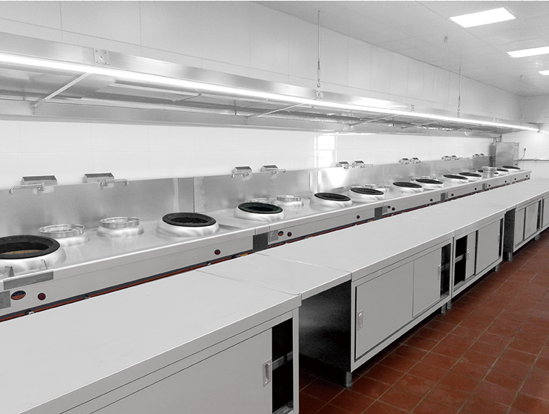 公司拥有先进的生产设备,雄厚的技术力量,严格的质检手段,专业为宾馆、酒店(楼)、饭店、企事业单位食堂厨房设计、制造、安装各式高效节能不锈钢灶具设备、排烟通风设备、调理设备、制冷保温设备、消毒设备、环保设备等十几个系列,上千个品种的设备,已形成完整的厨房设备配套生产体系。