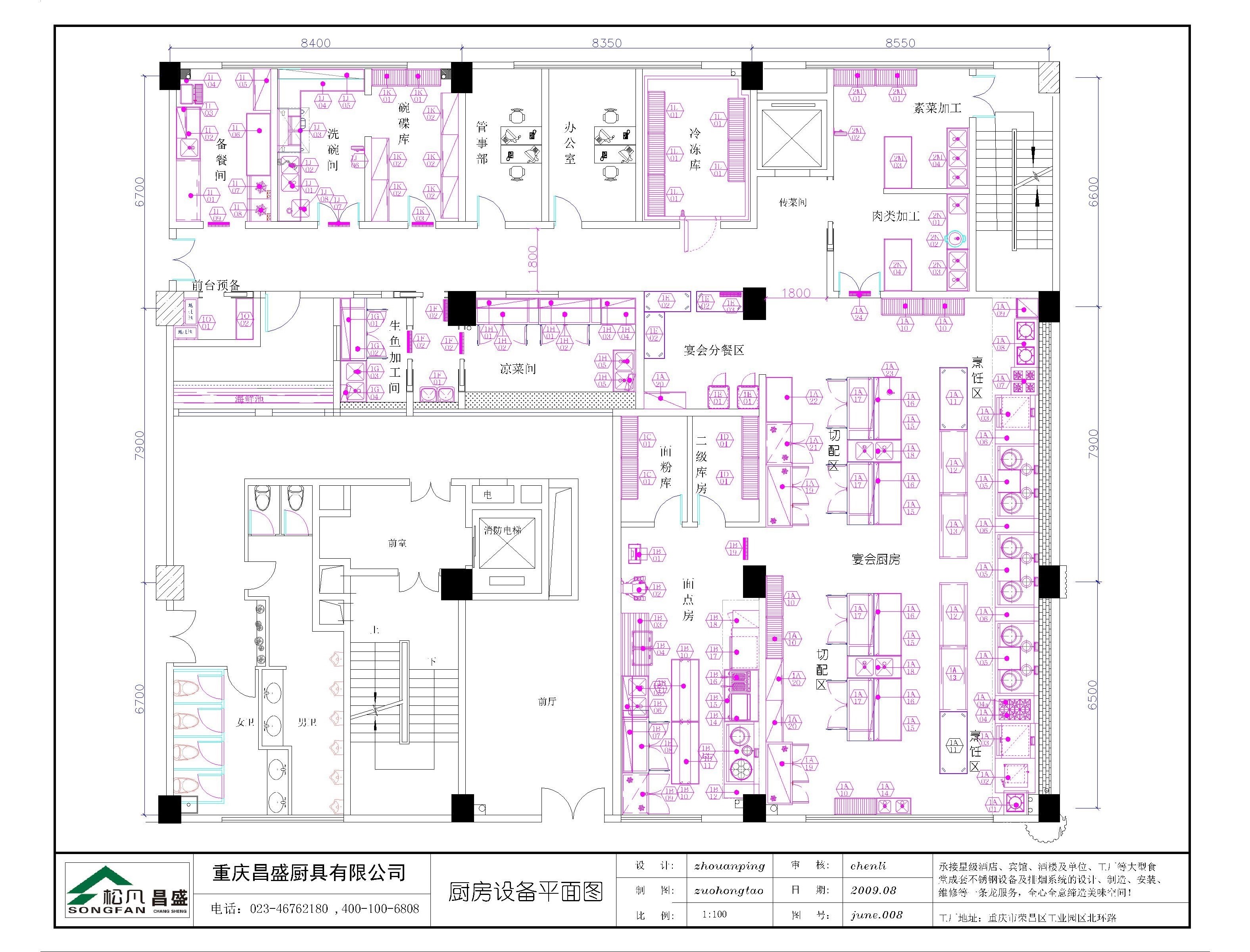 我们可根据客户的各种需求,厨房的具体环境,严格遵循消防、卫生及环保规定,为客户设计一个最佳布局方案和最优化的设备选配,使设备能充分发挥其功能,达到实用、方便、卫生、美观的效果。 同时提供合理的厨房设备布局平面图,相应的给、排水图,电路配置图,排送风系统工程图。